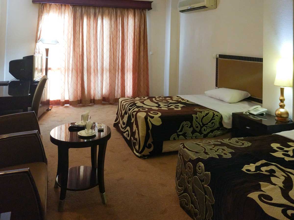 يحتوي الفندق على غرف مجهزة بوسائل الراحة الحديثة مثل تكييف الهواء، وحمامات خاصة، وتلفزيون مع قنوات فضائية. يمكن للنزلاء أيضاً الاستمتاع بخدمة الواي فاي المجانية في جميع أنحاء الفندق. تشتمل مرافق الفندق على مطعم يقدم المأكولات الإيرانية التقليدية، ومقهى ومركز للياقة البدنية.