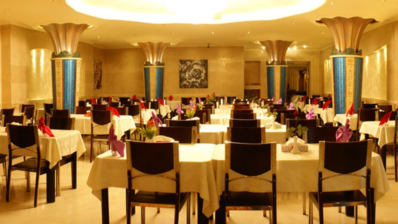 The hotel features a restaurant that serves a variety of Iranian dishes, staffed by experienced and trained personnel. The food quality is rated highly, and meals are served in a menu format. The hotel operates on a full-board basis, providing all meals for guests.