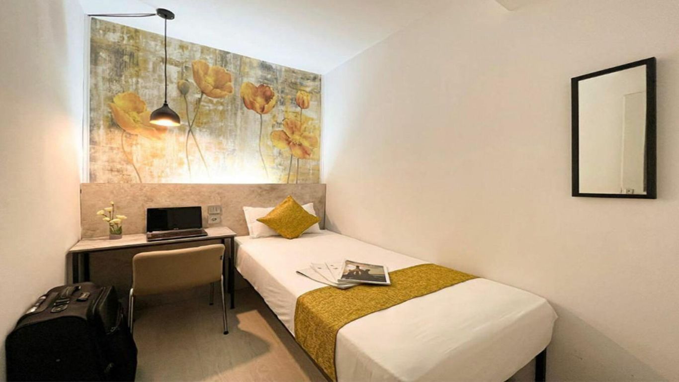 The hotel’s restaurant, located on the ground floor, accommodates around 30 guests and serves breakfast from 8 AM to 10 AM.
