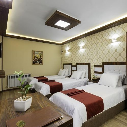 The hotel`s restaurant and café offer a cozy space for enjoying meals, beverages, and relaxation. Its location provides excellent access to Qazvin's notable attractions. The Chehel Sotoun Palace and Museum, Hamdallah Mostofi Tomb, Qazvin Museum, Ali Qapu Mansion, Peighambariyeh, and Sa'd al-Saltaneh Caravanserai are all within a 5-10 minute walking distance. Other attractions like the Molla Vaziri Caravanserai, Qazvin Bazaar, and the Grand Mosque of Qazvin are about 1.5 to 2 kilometers away.