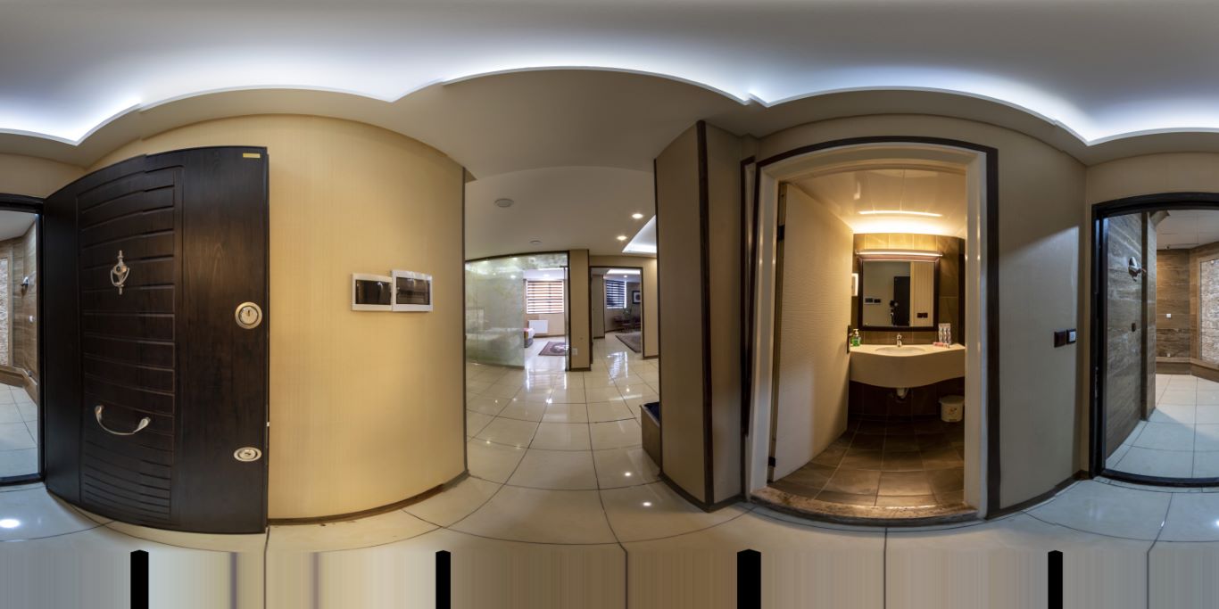 The hotel boasts a modern and elegant design, reflecting the fusion of contemporary and traditional Iranian architecture. The grandeur of the lobby features: