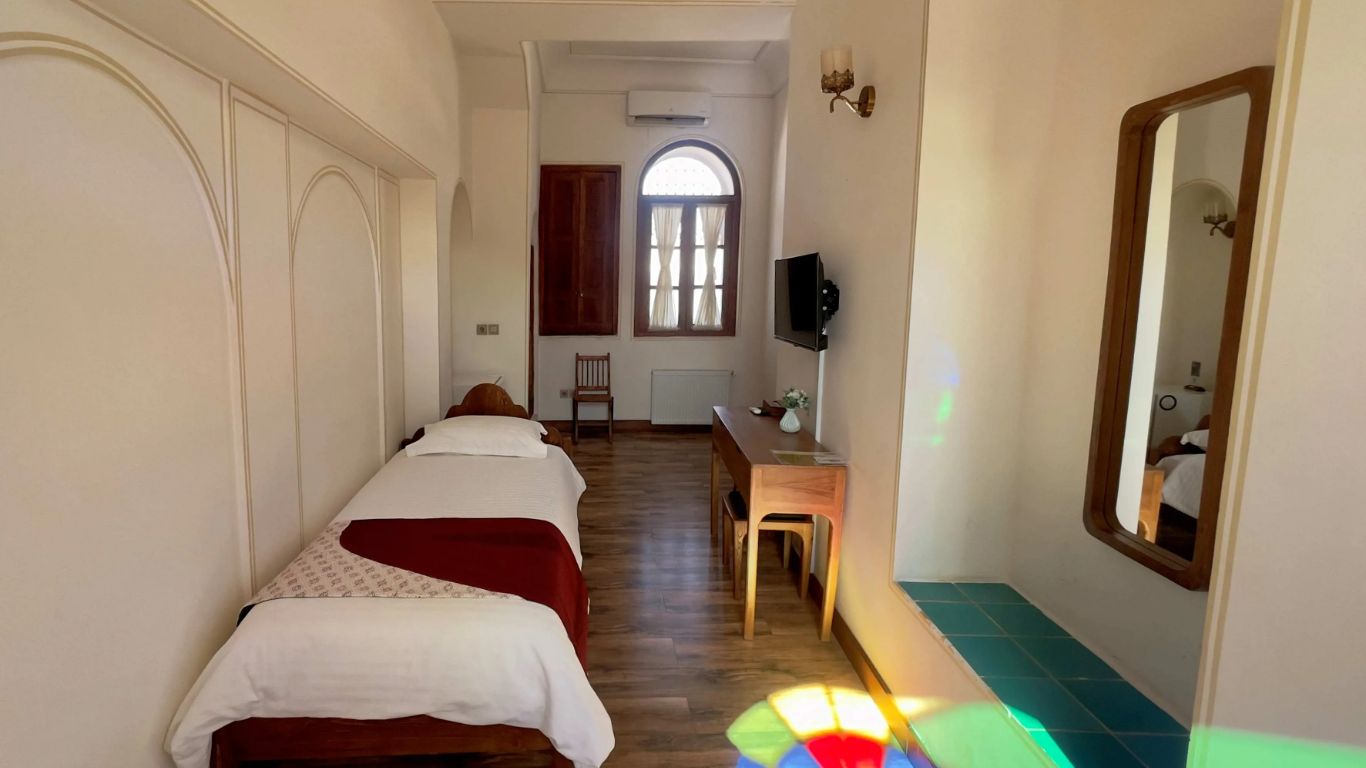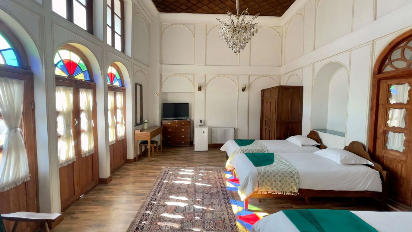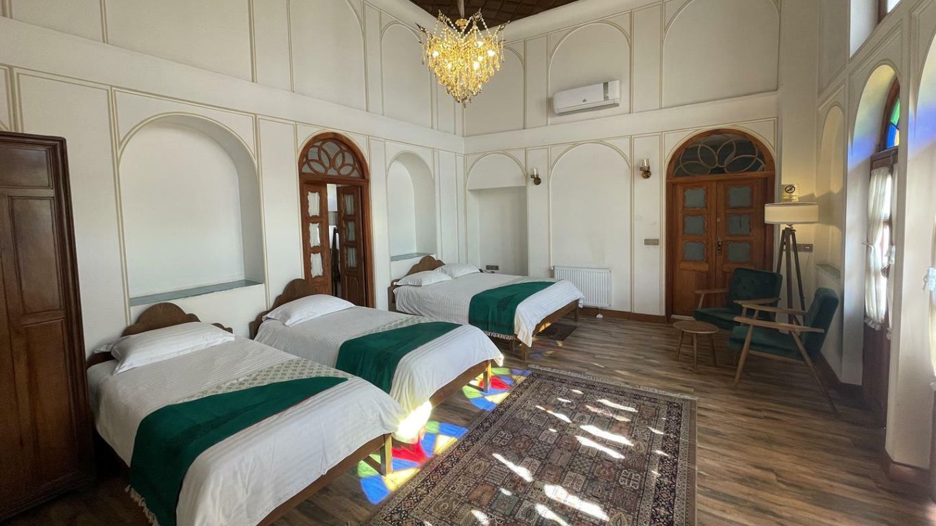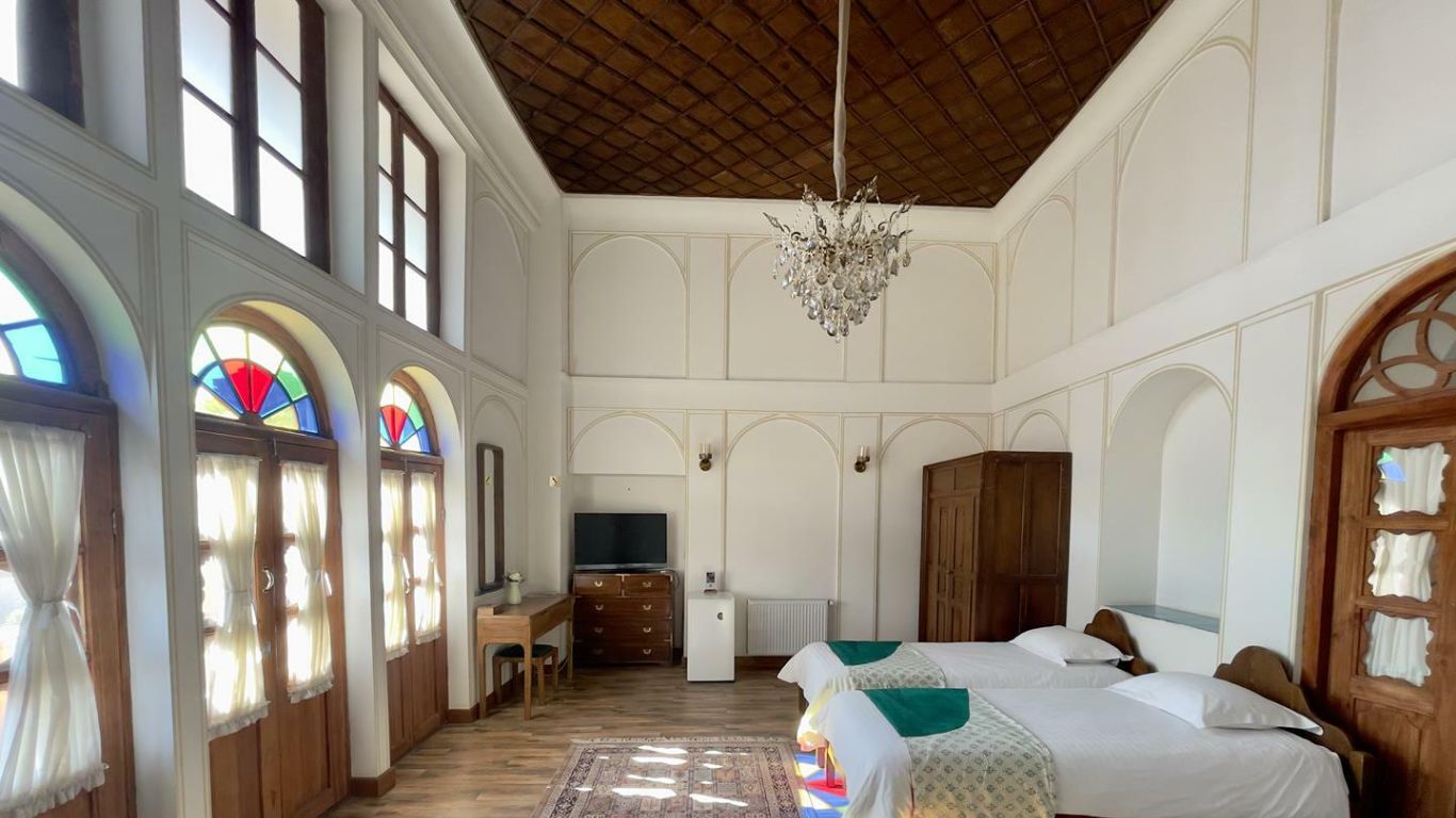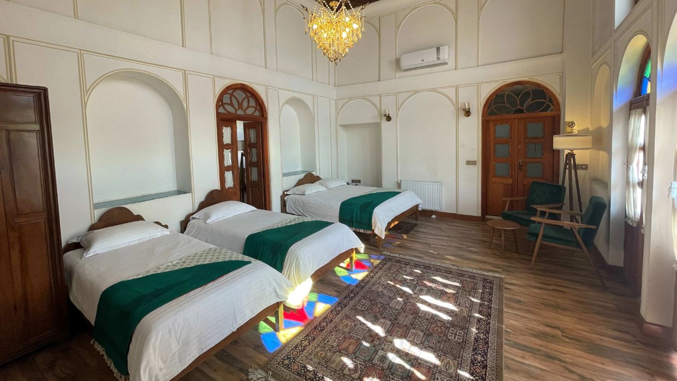 The hotel features 28 rooms across three floors, each designed to reflect the traditional architecture of the area. Guests can choose from single to five-person rooms, some with balconies overlooking the courtyard or the historic Jolfa neighborhood. Each room is equipped with essential amenities, including a private bathroom, air conditioning, and comfortable furnishings, to ensure a relaxing stay.
