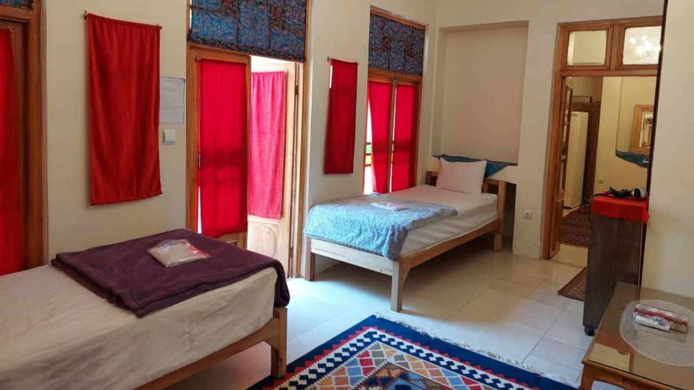Extra guests are accommodated with floor bedding. Each room includes a private bathroom with a Western-style toilet and shower, while an additional communal Iranian-style toilet is available. Heating is provided through radiators, and cooling is managed via air conditioning.
