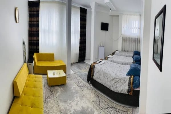 The Deniz Apartment Hotel Tabriz began operation in 2021. This hotel is built across 4 floors and offers 16 rooms. Facilities and services at the Deniz Apartment Hotel include an elevator, open parking, a coffee shop, room service, unlimited internet access, and a taxi service. Attractions in the city, such as the Shahriar Literary Museum, Ali Shah Citadel, Municipality Palace Museum, Blue Mosque, Tabriz Bazaar, and the Qajar Museum, are located close to the hotel. Rooms available for booking include double rooms, twin rooms, quadruple rooms, and five-person rooms. It is important to note that the rooms at the Deniz Apartment Hotel do not have private bathrooms or restrooms.