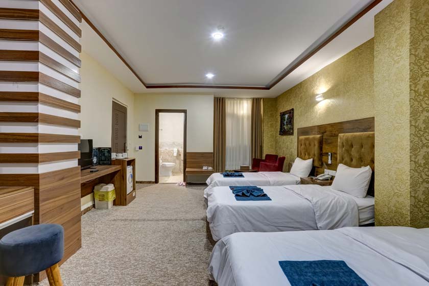 Diana Plus Hotel Qeshm is a newly built hotel on this beautiful island, opened in 2021. This 3-star hotel offers stylish and modern accommodations with top-notch amenities for guests. Accommodation options include double rooms, triple rooms, one-bedroom suites for three guests (Type B), triple rooms (Type A), one-bedroom suites for four guests (Type B), and quadruple rooms (Type A Patio). The hotel`s facilities include both Iranian and Western-style bathrooms, a café, a restaurant, televisions, and telephones in the rooms. If you value high-quality service, clean and well-designed rooms, friendly staff, and affordable pricing, Diana Plus Hotel Qeshm is an excellent choice for your stay.
