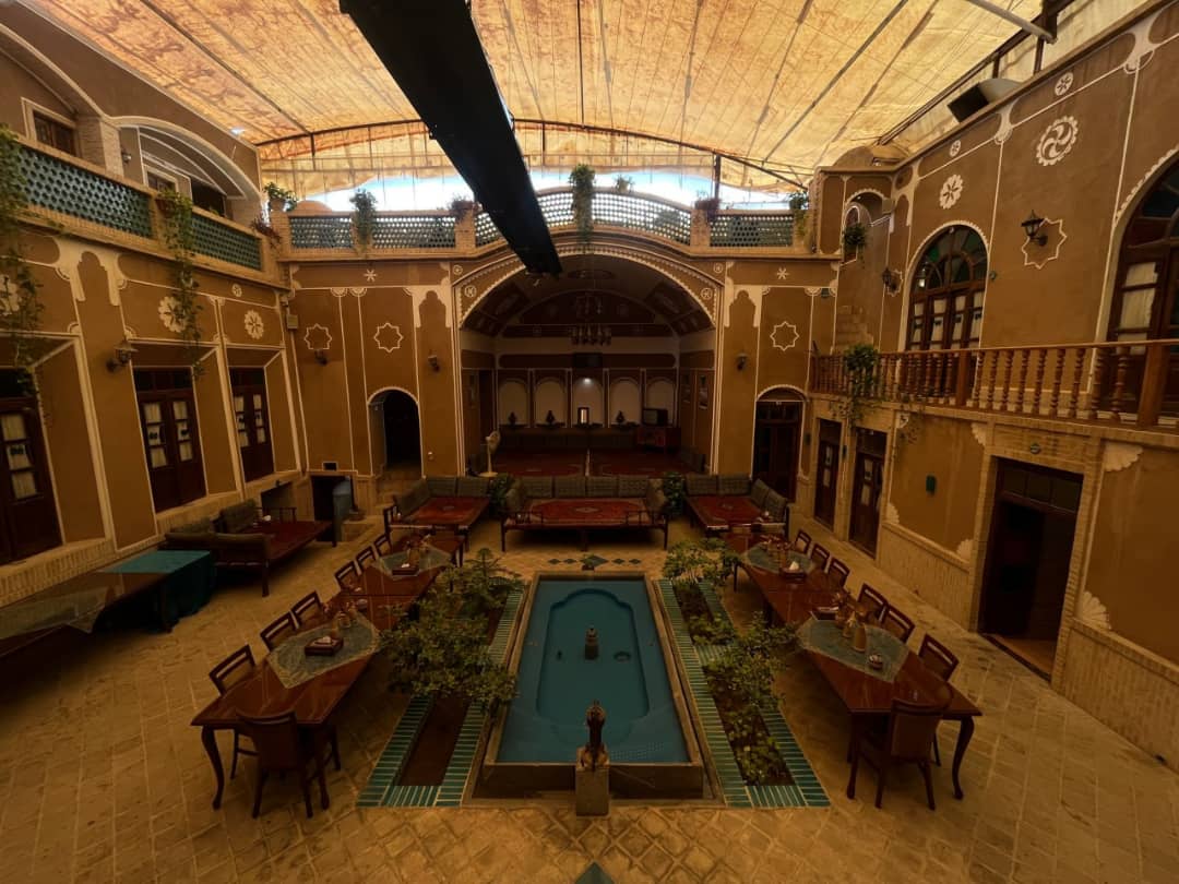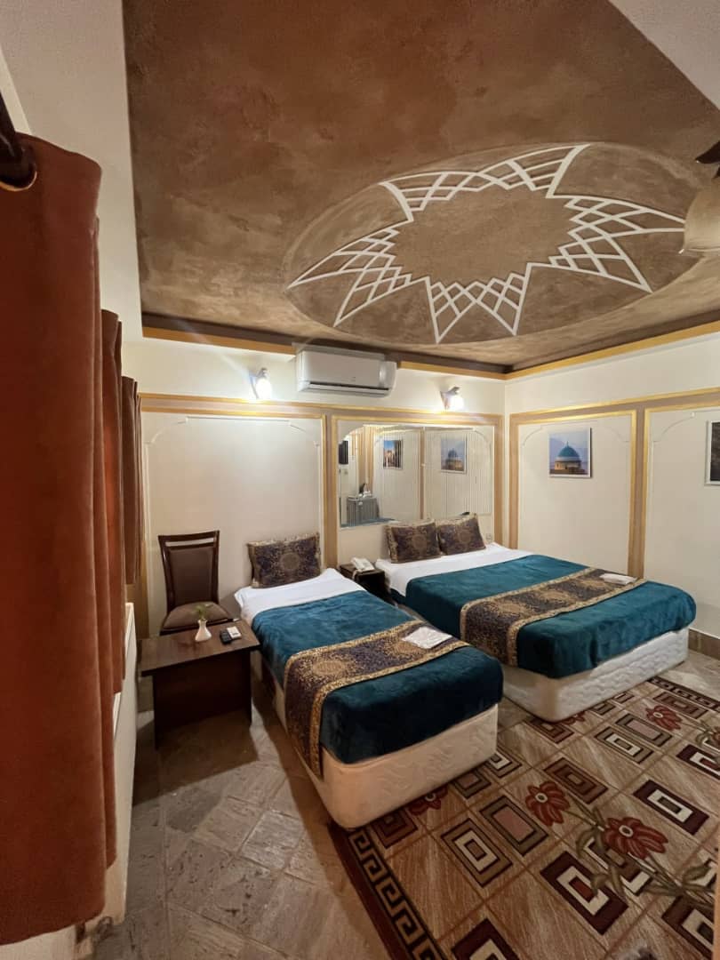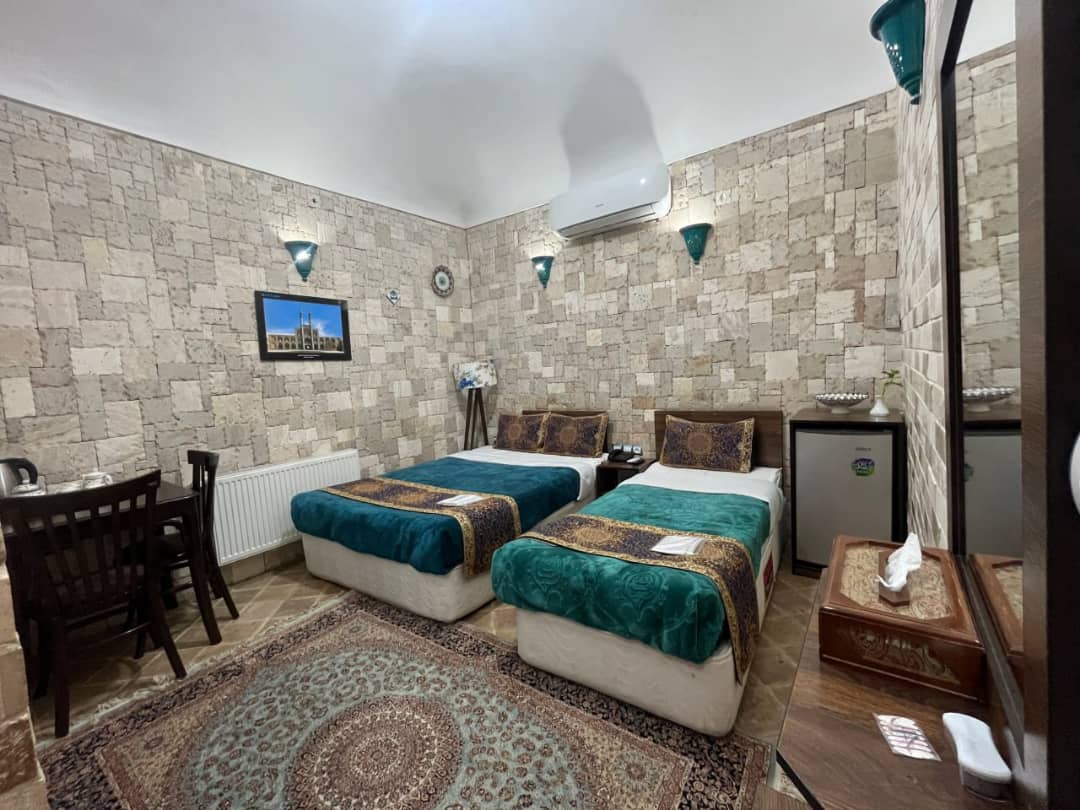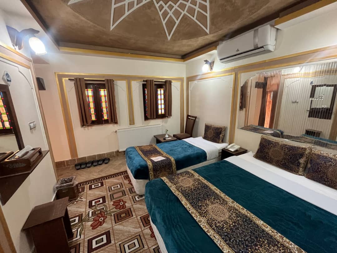This traditional 3-star hotel with straw walls, wooden windows, a courtyard, and a well-cleaned pool will provide you with a different and attractive stay in Yazd. The rooms are arranged simply and intimately, and with friendly and hospitable staff, you will experience comfort and convenience during your stay.