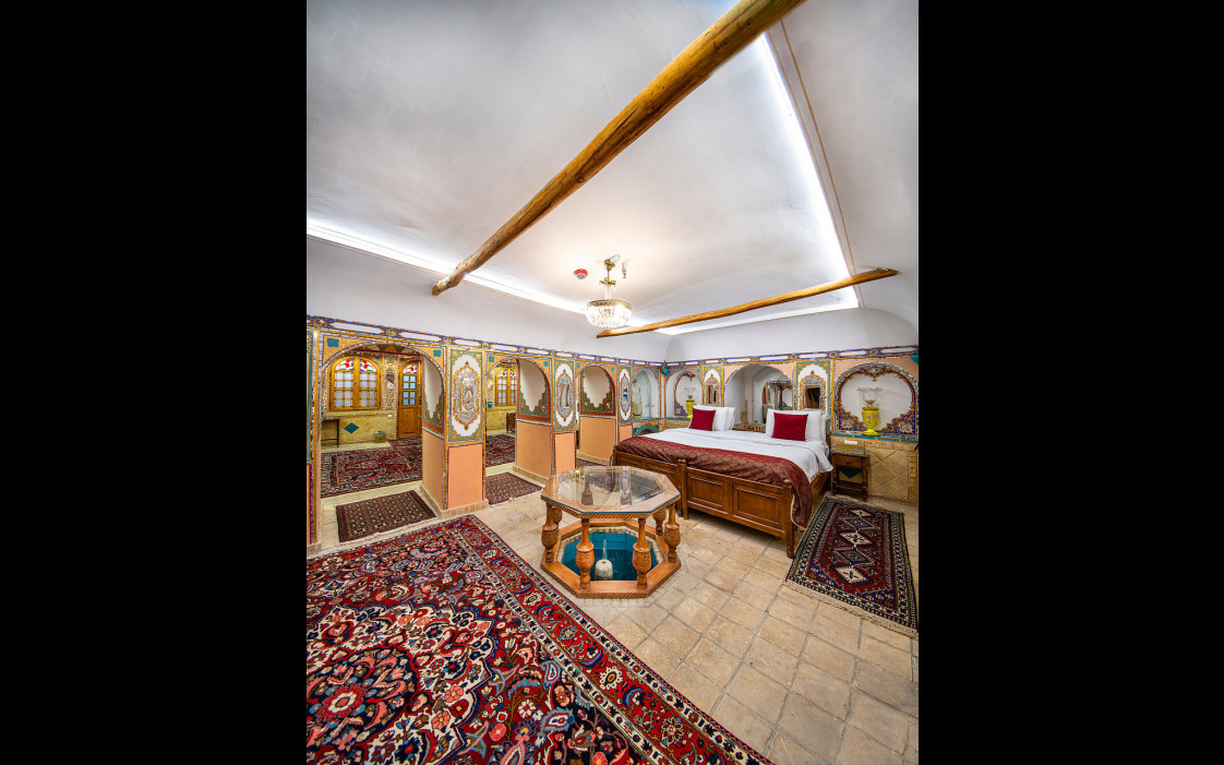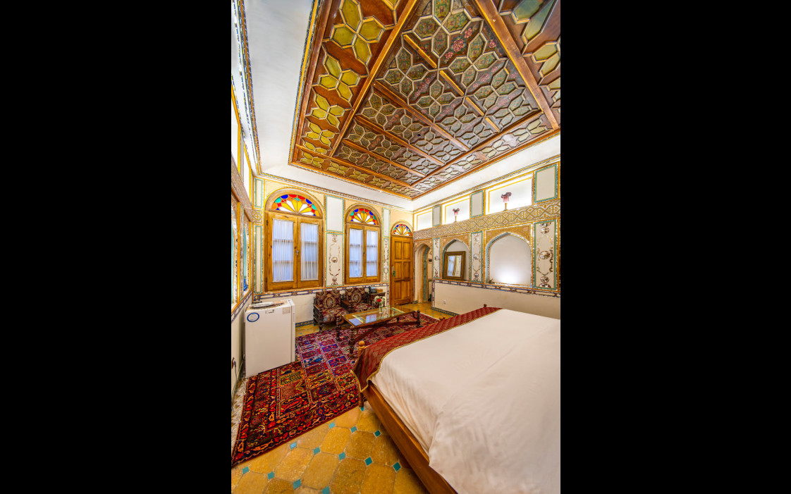 Each room is uniquely designed with Qajar elements, combining historic charm with modern amenities: