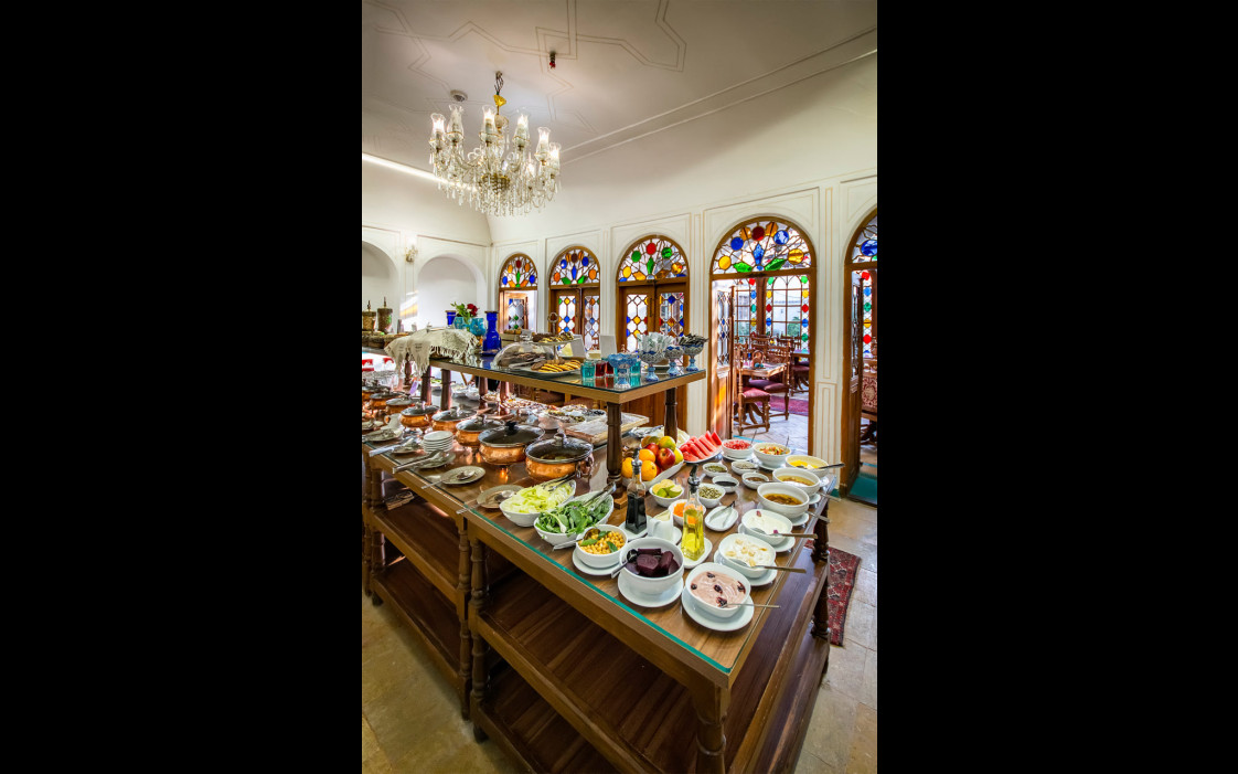 Guests can enjoy meals in the restored Shahneshin Hall, formerly a royal gathering space. The kitchen serves traditional Persian dishes using local ingredients: