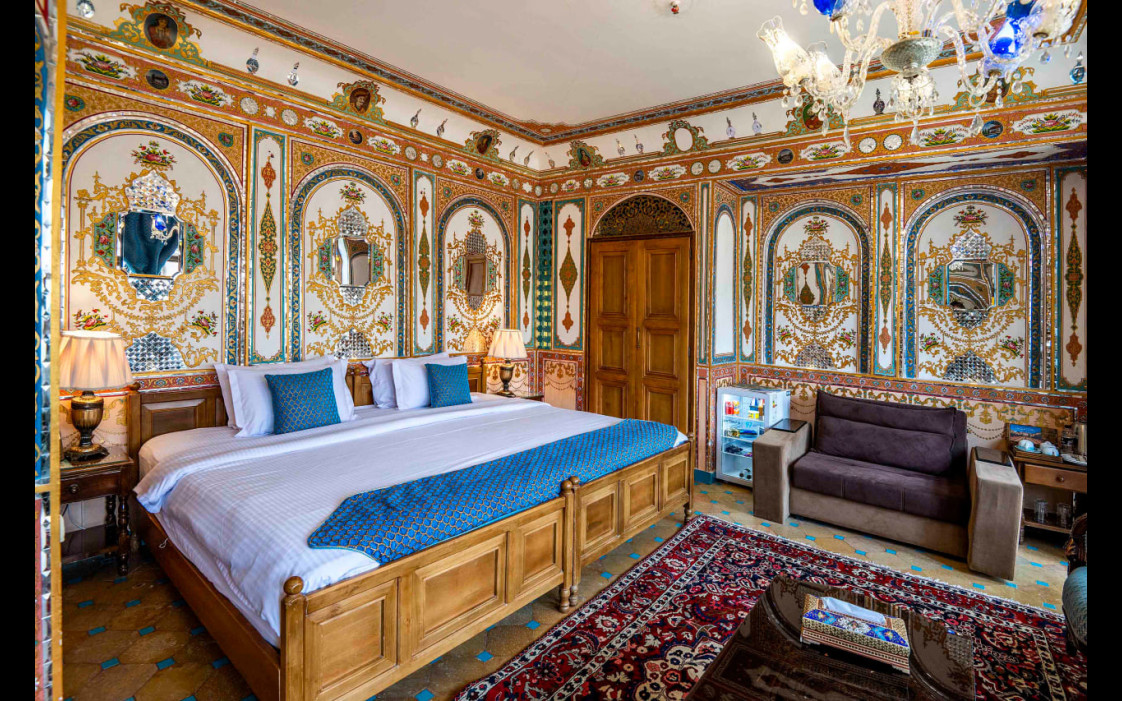 • Naqsh-e Jahan Room: Spacious and artistic, featuring ornate plaster and mirror work.