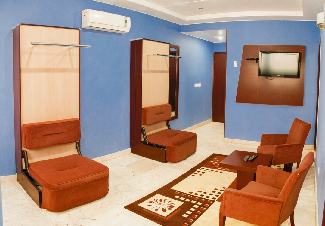 Please note that the hotel does not have a restaurant. However, guests have the option to dine at nearby establishments or place orders for food delivery. The lobby, accommodating up to 16 people, is conveniently located within the city`s traffic-friendly area.