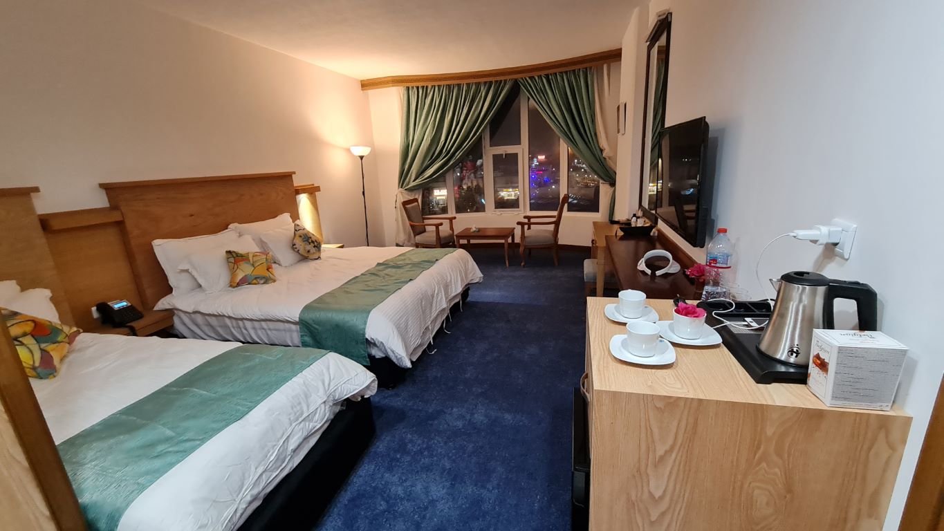 The guestrooms at the International Hotel are spacious and elegantly appointed, featuring modern decor and comfortable furnishings. Each room is equipped with a flat-screen TV, a minibar, and a private bathroom. Guests can also take advantage of the hotel's free Wi-Fi, which is available throughout the property.