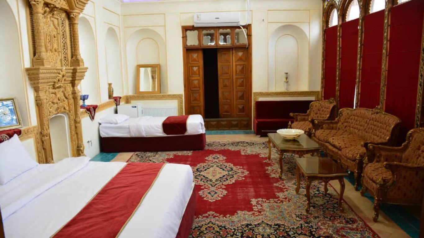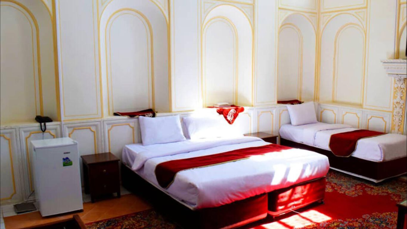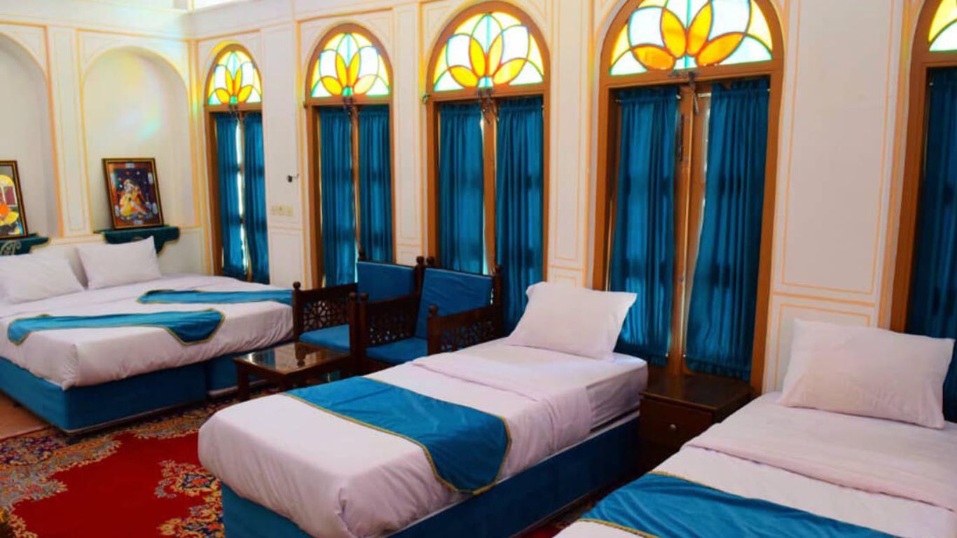 The hotel offers a glimpse into traditional Persian living, complete with exquisite design elements such as stained-glass windows, intricate plasterwork, and a serene courtyard.
