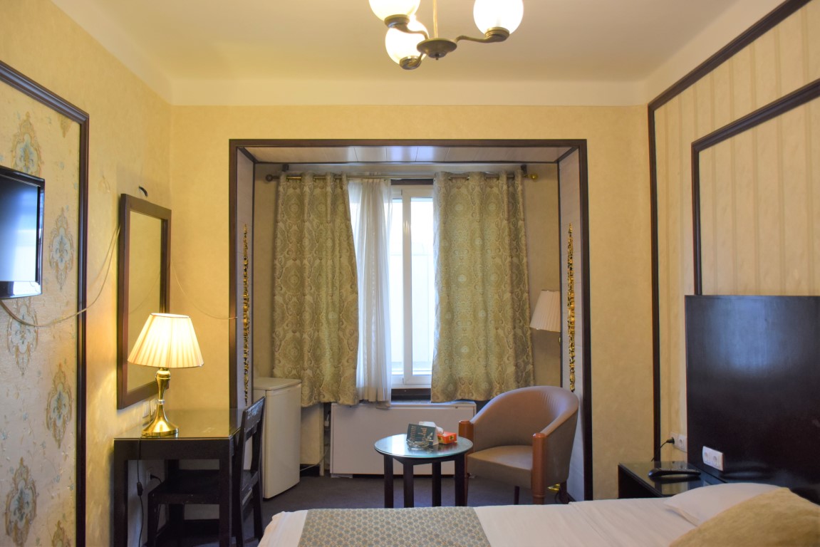 The hotel is located on Mofatteh Street, at the intersection with Taleghani Street, on the corner of Moeir Alley. Its central position allows easy access to many of Tehran’s cultural, historical, and entertainment sites. Nearby attractions include City Theater, Shahrzad Theater Complex, Marble Palace – Museum of Iranian Art, Moniriyeh Square, Sangelaj Theater, National Museum of the Holy Quran, Moghadam Museum House, Malek National Library and Museum, Valiasr Square, Milad Tower, Saei Park, Ab-o-Atash Park, Qasr Prison Garden Museum, Ministry of Interior Hall, Tabiat Bridge, Laleh Park, Carpet Museum of Iran, Museum of Communications, Ebrat Museum, Park-e Shahr, Mostofi al-Mamalek Historical House, Golestan Palace, Masoudieh Mansion, National Jewelry Museum, Glassware and Ceramic Museum of Iran, Amin al-Soltan Mansion, Artists’ Park, Tehran Museum of Contemporary Art, Negarestan Garden Museum, and more.