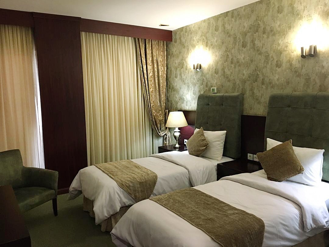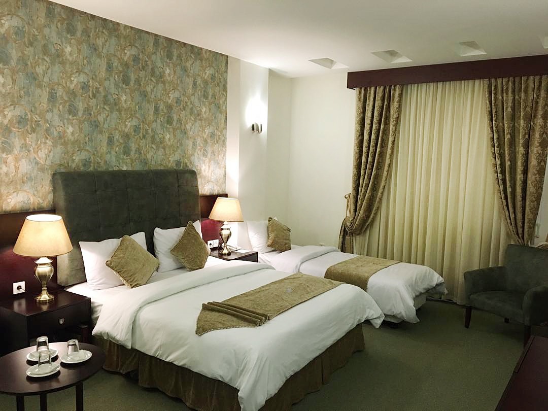 Merat Hotel in Mashhad is a three-star hotel located close to the Holy Shrine of Imam Reza. This newly established hotel started its operations in 2019. The hotel features 91 accommodation units spread over six floors, offering single to quadruple rooms and two-bedroom suites, each with different capacities and amenities. Guests can book rooms with either a full board (including breakfast, lunch, and dinner) or breakfast only, based on their needs. The booking rates are relatively reasonable and depend on the room type, services, travel date, and the number of guests.