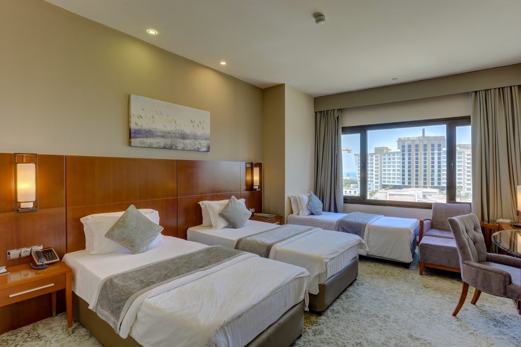 The hotel features a wide range of guest rooms, including standard rooms, deluxe rooms, and suites. All rooms are equipped with a variety of modern amenities, including air conditioning, flat-screen TVs, and complimentary Wi-Fi. The deluxe rooms and suites offer additional space and amenities such as a balcony or terrace with beautiful views of the city or sea.