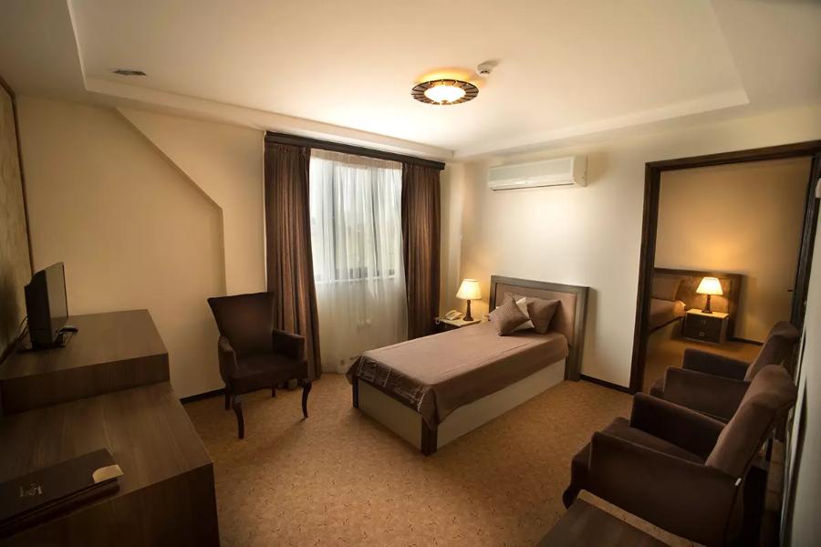 Moein Hotel Fuman, a five-star hotel located 25 kilometers from Rasht, is situated near the Qaleh Rudkhan area. Opened in 2014 on an 11,000 square meter property, the hotel currently features 62 accommodation units. The story behind its construction is unique: initially, the building was planned as a tea factory, but the decision was later made to convert it into a hotel. By booking Moein Hotel Fuman, you have the opportunity to stay amidst lush tea plantations and enjoy the stunning views throughout your stay. The price for booking a room or suite at the hotel varies depending on the type of accommodation chosen. Its tranquil location away from the city`s hustle and bustle has made Moein Hotel a popular destination for travelers seeking relaxation and a peaceful retreat from urban life.
