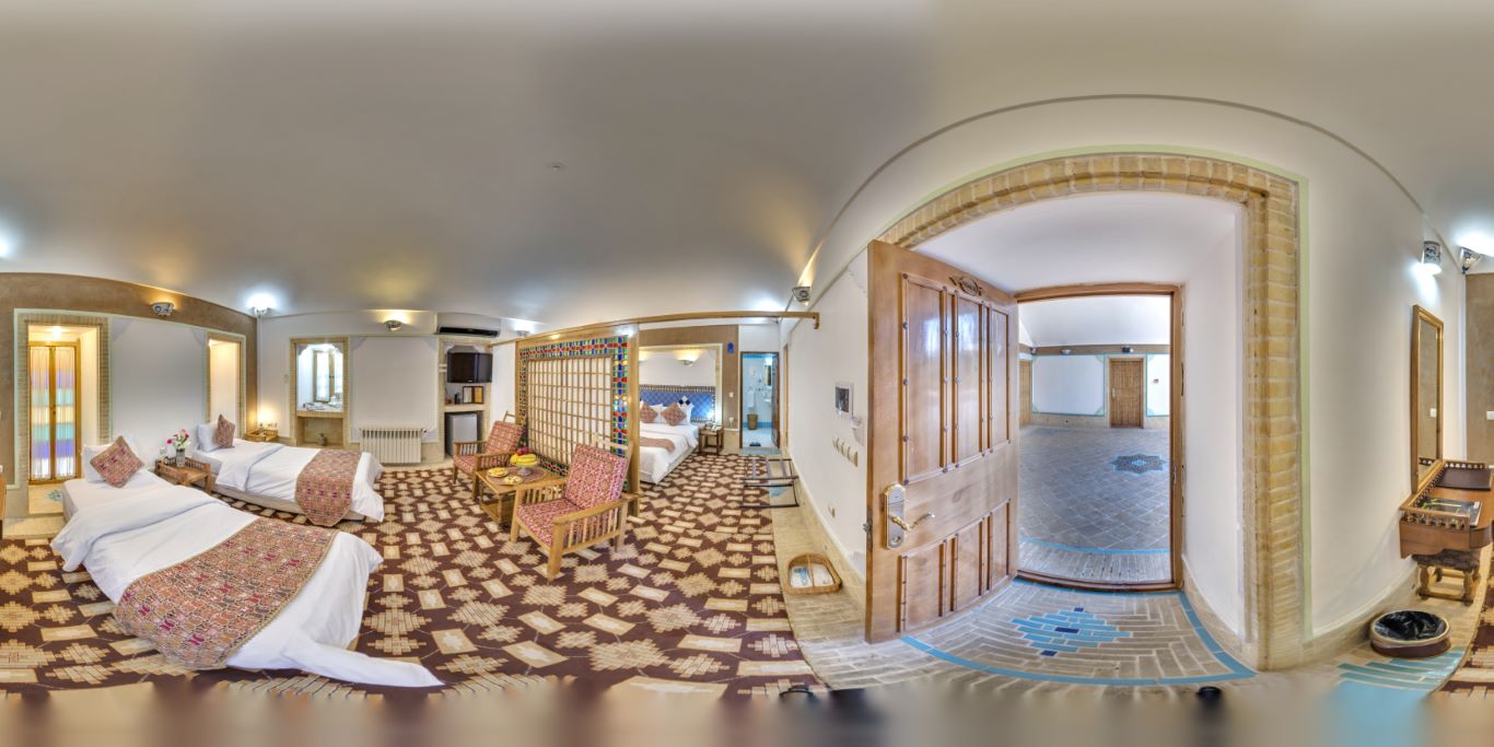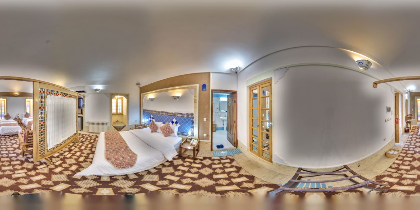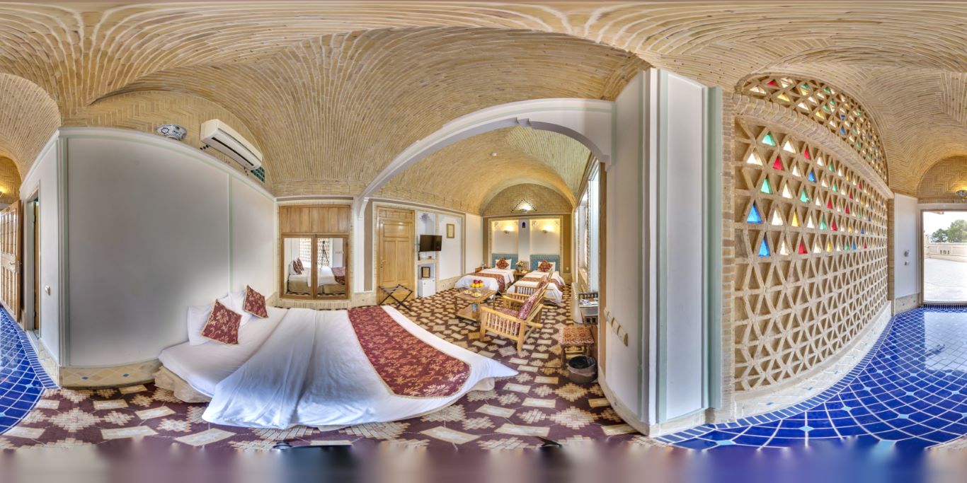 With 106 rooms, the 4-star hotel opened in 2003 and was renovated in 2019. Many people travel to Yazd to see the towering and ancient trees in Moshir Al-Mamalek's large garden, ponds, fountains, and streams of water.
