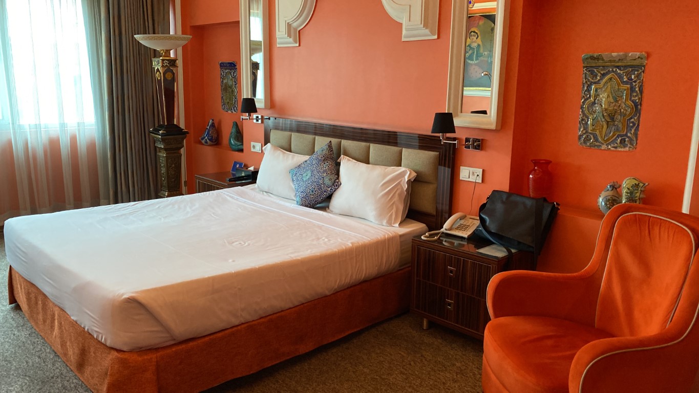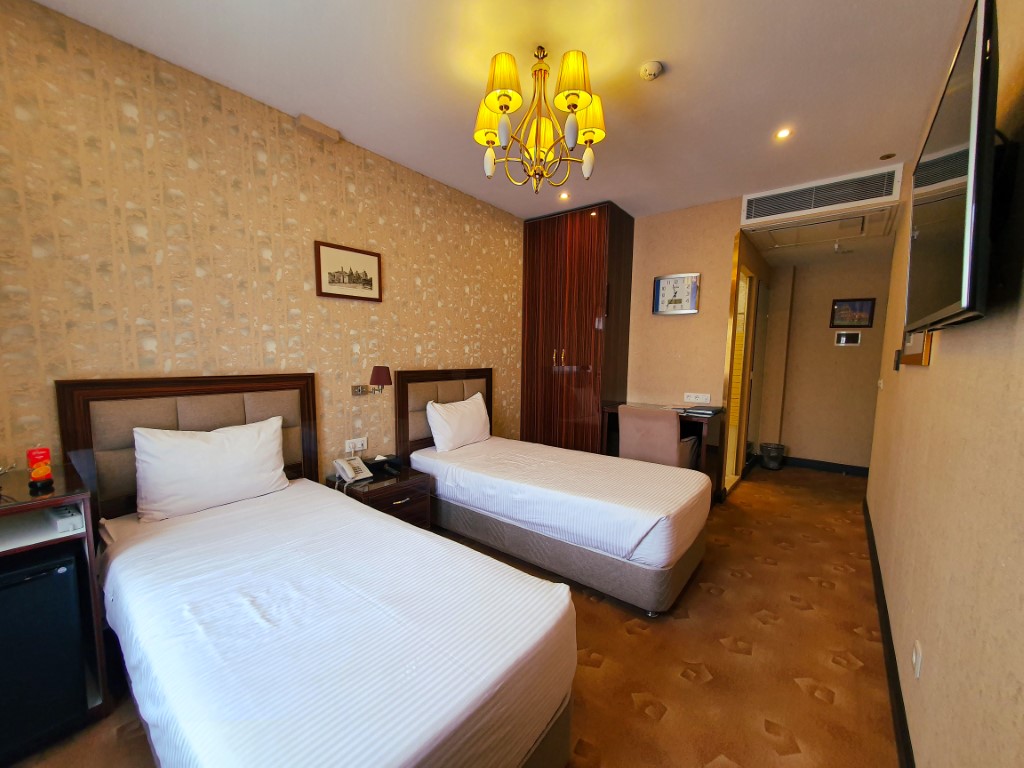 Niloo Hotel Tehran offers 56 rooms and suites, categorized into Twin, Double, VIP, and Family services. One of the most delightful features that distinguish this hotel is the harmony between the room decor and its furnishings. The wallpaper or wall color of each room is matched with the bed and furniture, so every stay feels unique. The general amenities in the rooms include a bed, refrigerator, full bathroom, sofa, table, and chairs. The innovative and always-active air conditioning system in the lobby and rooms has particularly impressed guests.
