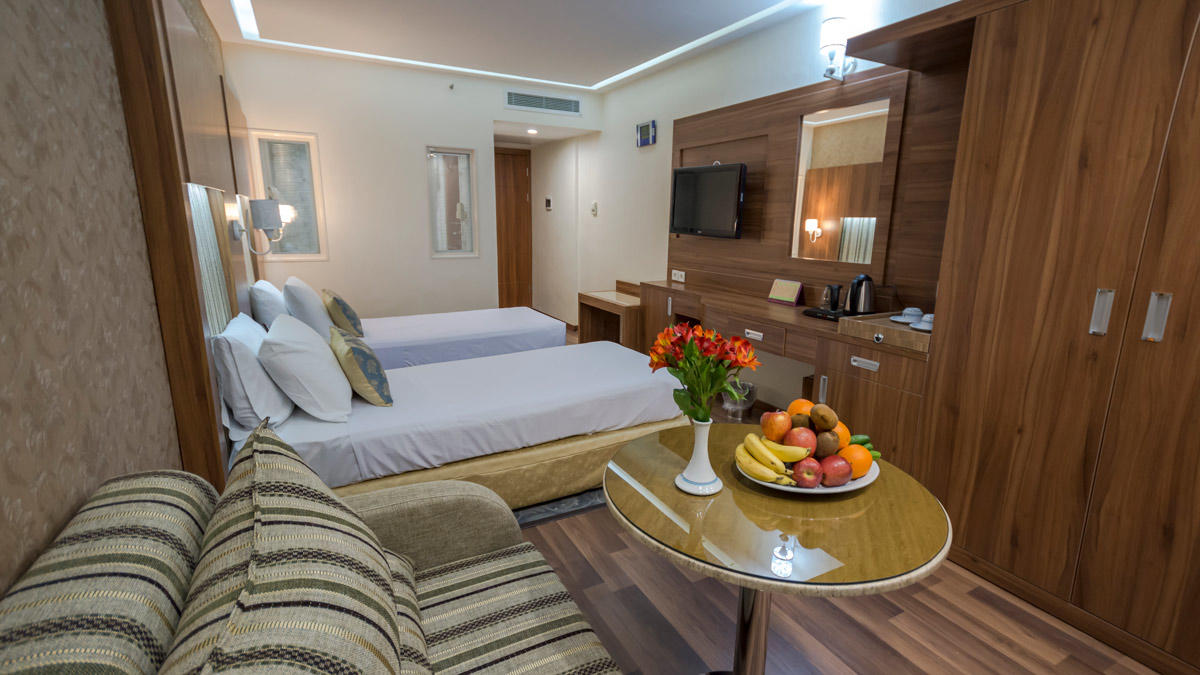 Parsian Hotel Hamedan boasts a variety of rooms and suites that have been recently renovated to provide a contemporary and convenient atmosphere. Each room is equipped with amenities such as air conditioning, Wi-Fi, minibars, and private bathrooms. The hotel’s serene environment, coupled with its friendly staff, ensures a restful stay for all guests.