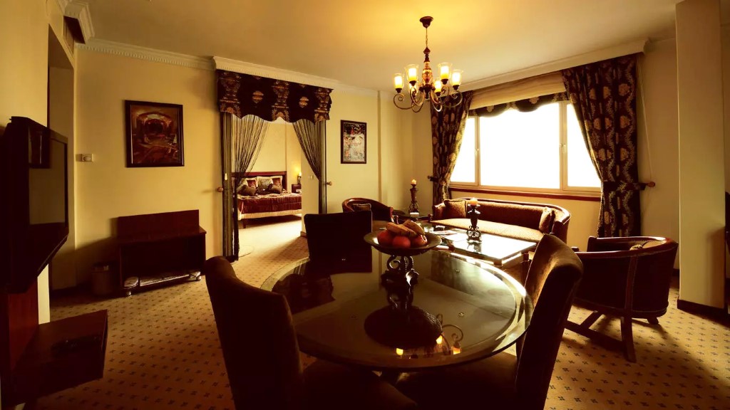 The hotel is approximately 12.3 kilometers from Mehrabad Airport, 11.9 kilometers from the West Terminal, 11.6 kilometers from the East Terminal, 14.8 kilometers from the South Terminal, 2.6 kilometers from Beyhaghi Terminal, and 5.2 kilometers from Tehran Railway Station.