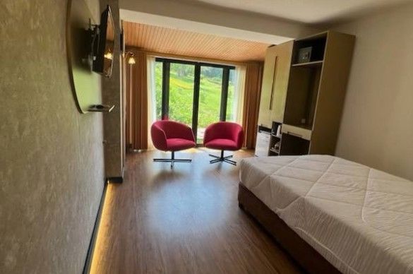 The hotel’s amenities and services include a tennis court, restaurant, café, swimming pool, sauna, traditional teahouse, and children’s play area, all contributing to its popularity and guest satisfaction.