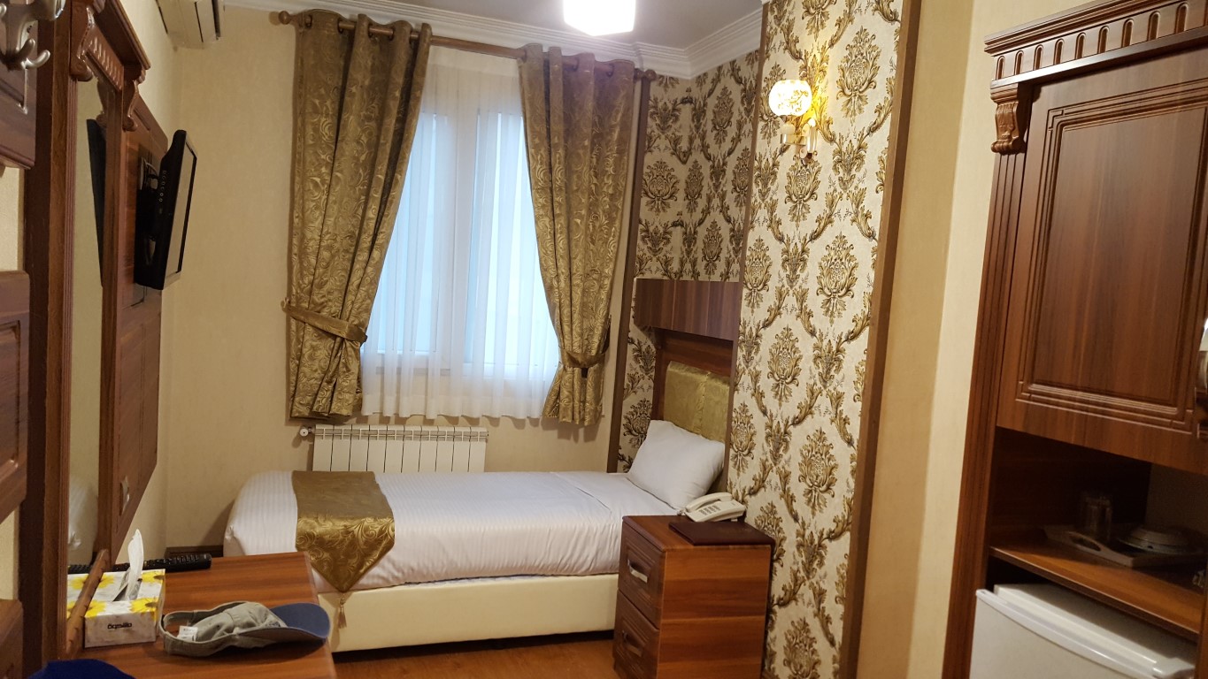 Shahryar Hotel offers 74 accommodation units, making it an excellent choice for groups and families. The hotel features standard rooms, including single, double, twin, and triple rooms, as well as larger rooms like the four-bed room with one double and two single beds, and the five-bed room with one double and three single beds.