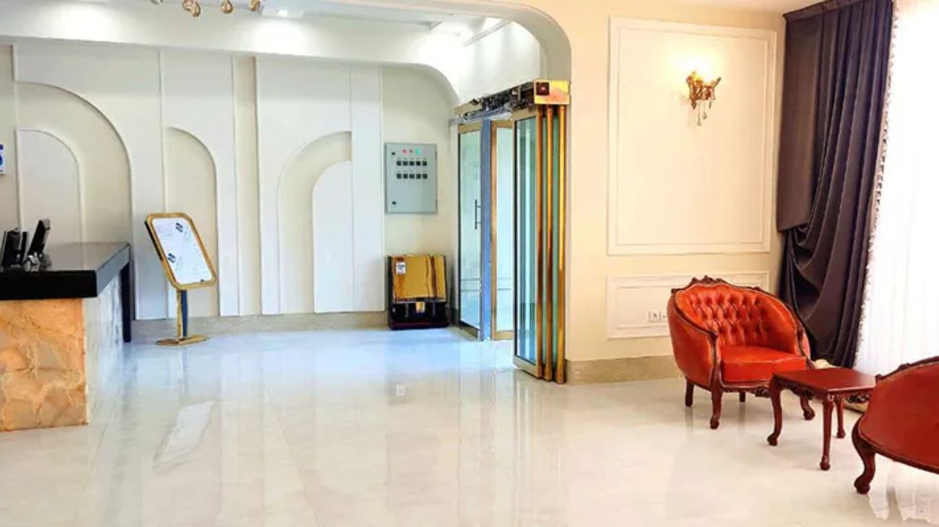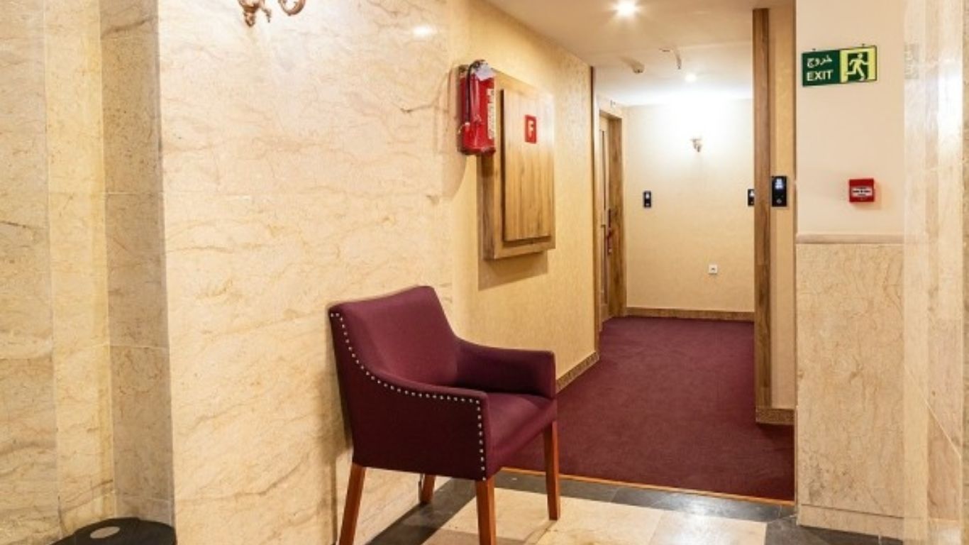 The hotel features a 5-story building with 45 accommodation units, ranging from double to quadruple rooms. Each room is equipped with modern amenities, including TV, furniture, bathroom with toiletries, wardrobe, refrigerator, kettle, air conditioning, heating system, high-speed internet, and safety features like fire extinguishers. The hotel has a cozy lobby where guests can relax during check-in. Additional facilities include a safety deposit box, luggage room, prayer room, shoe shining machine, and services such as city tours, housekeeping, and transportation.