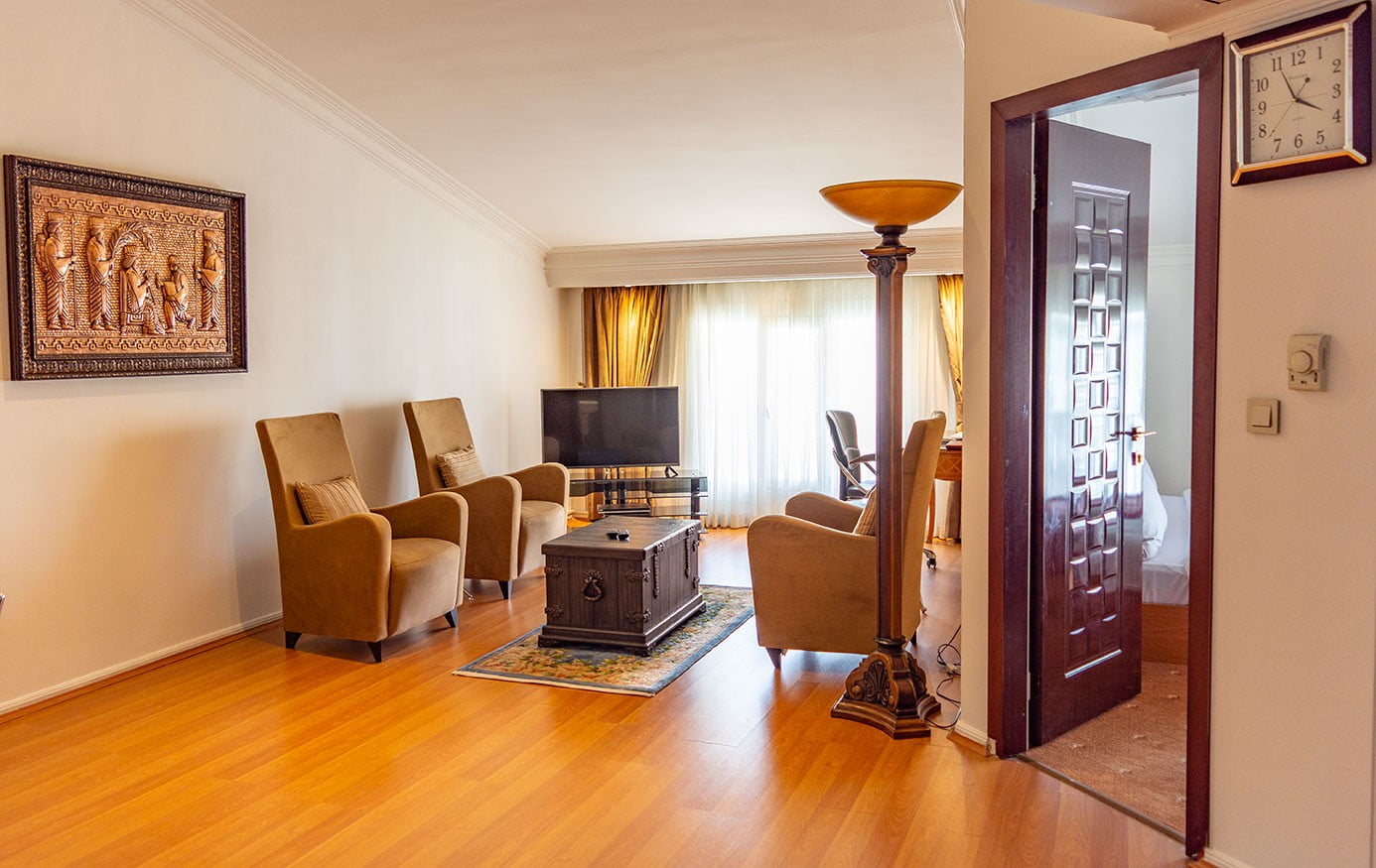 Larger suites, such as the Royal and Senator Suites, provide additional luxury with enhanced furnishings, artistic décor, and extended facilities, ideal for long-term stays or family accommodations.