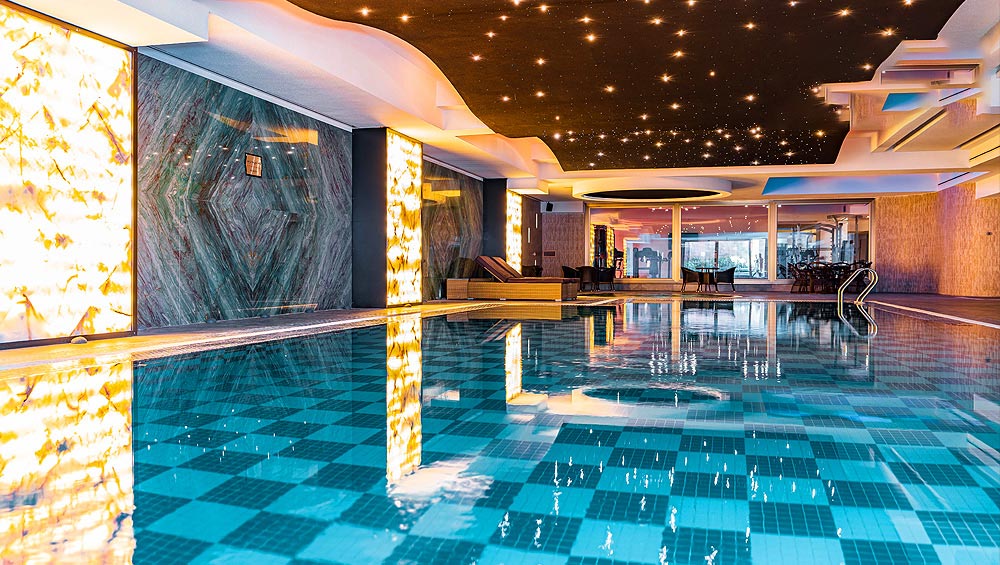 Yes, the Espinas Palace Hotel is equipped with a state-of-the-art fitness center and a lavish indoor swimming pool, allowing guests to relax and stay fit during their stay.